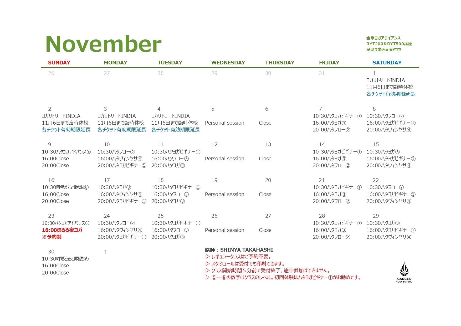 11月のスケジュール